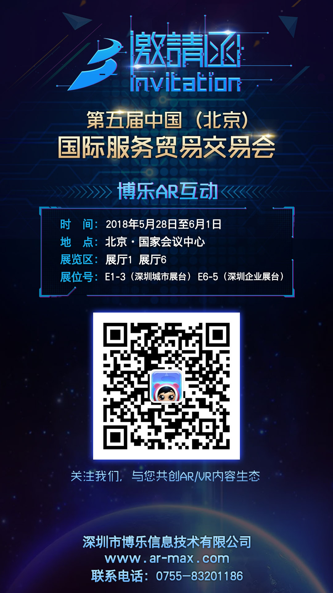 由商务部和北京市政府共同主办的第五届中国(北京)国际服务贸易交易会(简称京交会)将于5月28日至6月1日在北京国家会议中心举办。作为“会展神器”的博乐AR互动即将亮相展会。