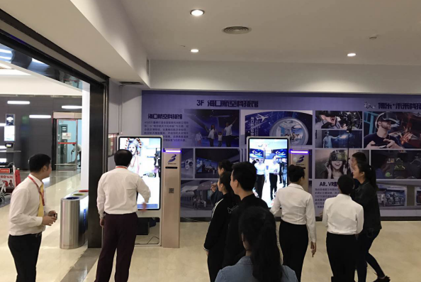 近日,位于海口美兰国际机场到达厅的“海口航空旅游城”机场体验厅对外开放,该体验厅主要向旅客推介海口航空旅游城各楼层主要特色以及相关服务,在该体验厅内云集了Hololens 、X-mirror引力透镜、HTC VIVE、PS VR等市场上顶级的AR\VR产品供大家免费体验,其中博乐信息技术自主研发的“AR+体感”互动一体机“引力透镜”一经亮相,便吸引了众多旅客的关注,纷纷排队体验。